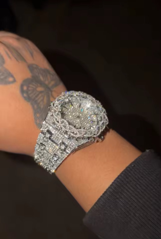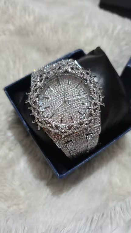 Nein. Die Uhr ist mit hochwertigen Strass-Diamanten besetzt, nicht mit natürlichen Diamanten. Sie sind präzisionsgefasst, um einen Kühnen Luxus-Look zu bieten.